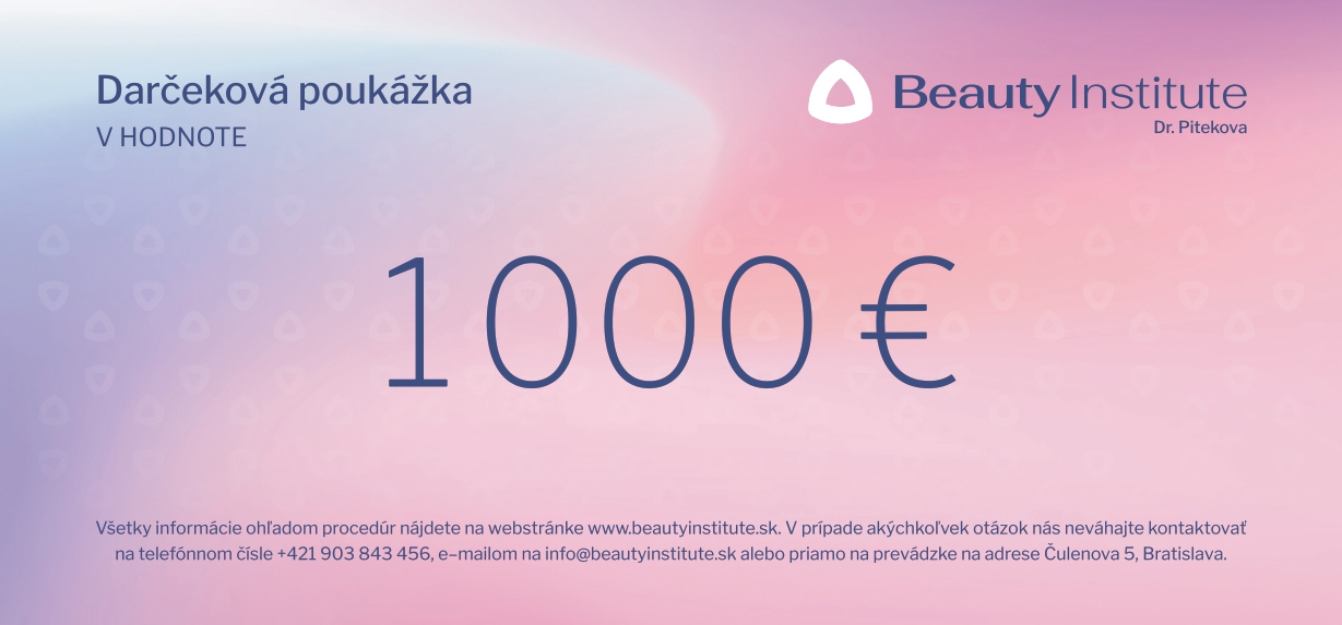 Darujte krásu a starostlivosť v Beauty Institute. Táto darčeková poukážka má hodnotu 1000 € a doručíme Vám ju e-mailom ako digitálny voucher s unikátnym kódom.