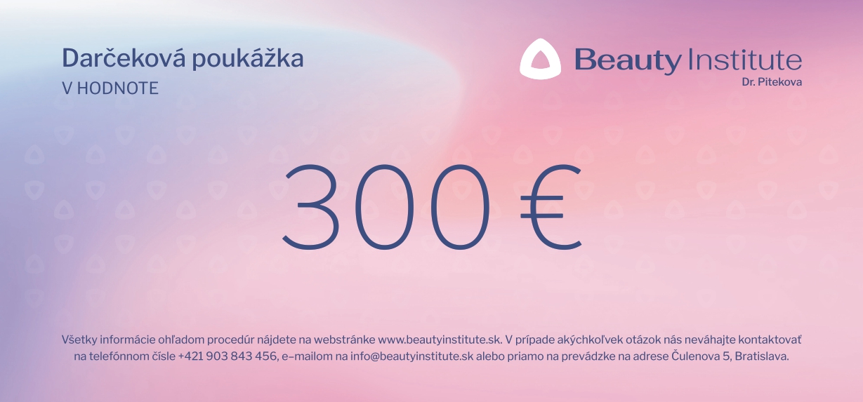 Darujte krásu a starostlivosť v Beauty Institute. Táto darčeková poukážka má hodnotu 300 € a doručíme Vám ju e-mailom ako digitálny voucher s unikátnym kódom.